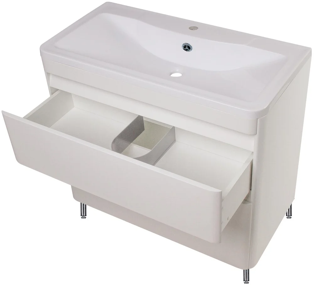 Напольная тумба под раковину Style Line Атлантика 90 Plus Люкс – это модель, выполненная в красивом оттенке ясень перламутр, со стилизацией под натуральную структуру дерева. Особенностью модели выступает необычное решение угловых частей, которые имеют сглаженные линии, делая корпус обтекаемым и эргономичным. Тумба выполнена из высококачественных влагостойких материалов с прочным защитным пленочным покрытием, что защищает мебель от повреждений и негативной влажной среды.