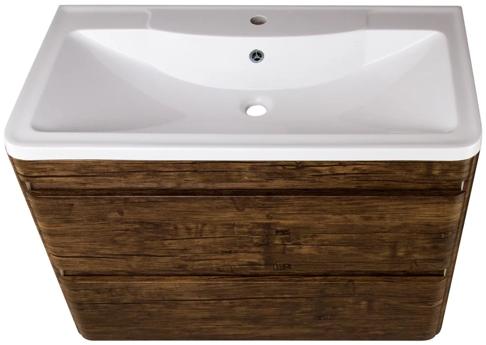 Подвесная тумба с раковиной Атлантика 100 см от Style Line в отделке состаренного дерева является образцом респектабельности и солидности. Несмотря на внушительные габариты, изделие не выглядит громоздко благодаря сглаженным углам и навесной конструкции. Ход вместительных выдвижных ящиков всегда будет оставаться плавным и легким, даже если они будут полностью наполнены, ибо прочные крепления и надежные механизмы доводчиков обеспечат этот процесс. Под такой мебелью удобно убирать, благодаря чему ваша ванная комната будет сиять чистотой и порядком.