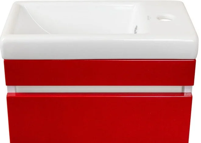 Красная тумба с раковиной Style Line Compact 40 Люкс станет отличным вариантом для оснащения малогабаритного санузла. Изделие изготовлено из влагостойких материалов, покрытых защитной глянцевой пленкой. При натяжении пленки тумба полностью проклеивается по всей поверхности высококачественным клеем Henkel, что придает мебели дополнительную защиту от влаги. При обработке фасадов применяется немецкий кромочный материал Rehau. Мебель комплектуется дюбель-стяжками и заглушками Hettich (Германия). Крепится к стене при помощи прочных хромированных скрытых навесов Camar.