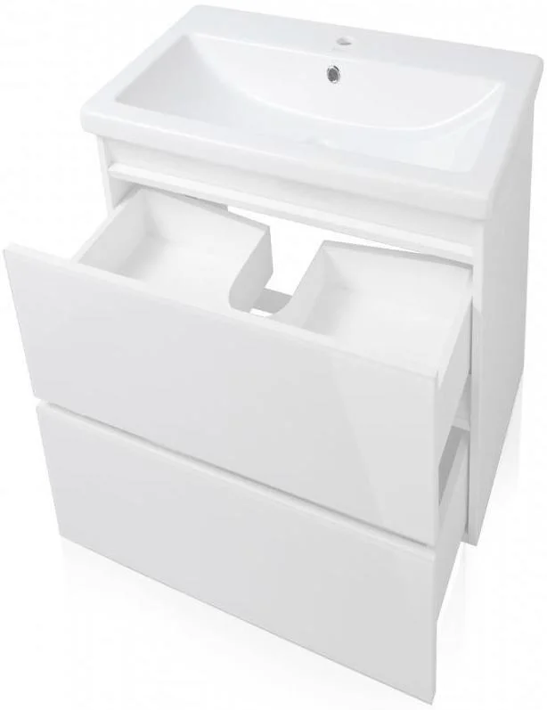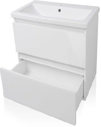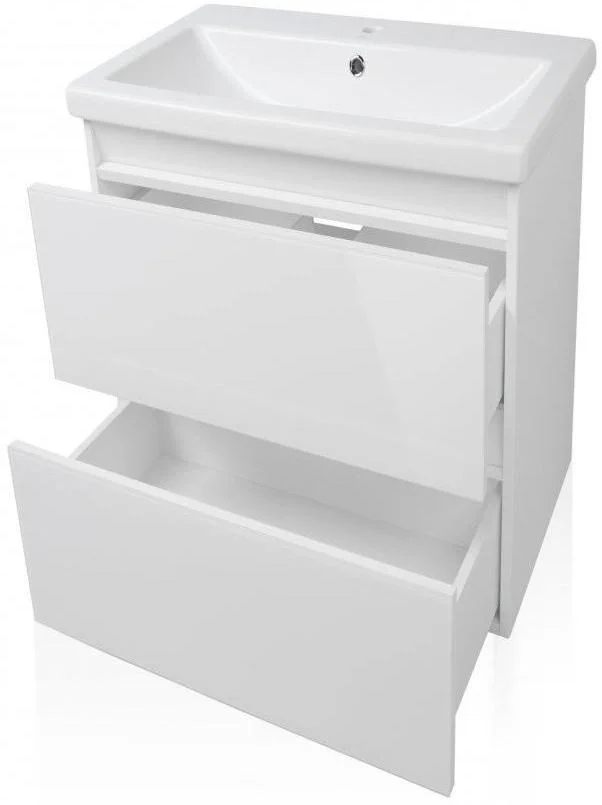 Тумба с раковиной Style Line Даймонд 60 Люкс Plus подвесная в белом дизайне имеет минималистичный прямоугольный корпус, оборудованный двумя выдвижными ящиками с качественной фурнитурой Boyard. Для производства данного изделия использован современный влагостойкий МДФ-материал и декоративное покрытие фасадов тонированным стеклом Лакобель. Специальная технология с нанесением эмали на внутреннюю поверхность стекла, обеспечивает яркий и насыщенный цвет. Для создания идеального образа, торцы фасадов обработаны кромочным материалом Rehau, а все соединения закрываются заглушками.