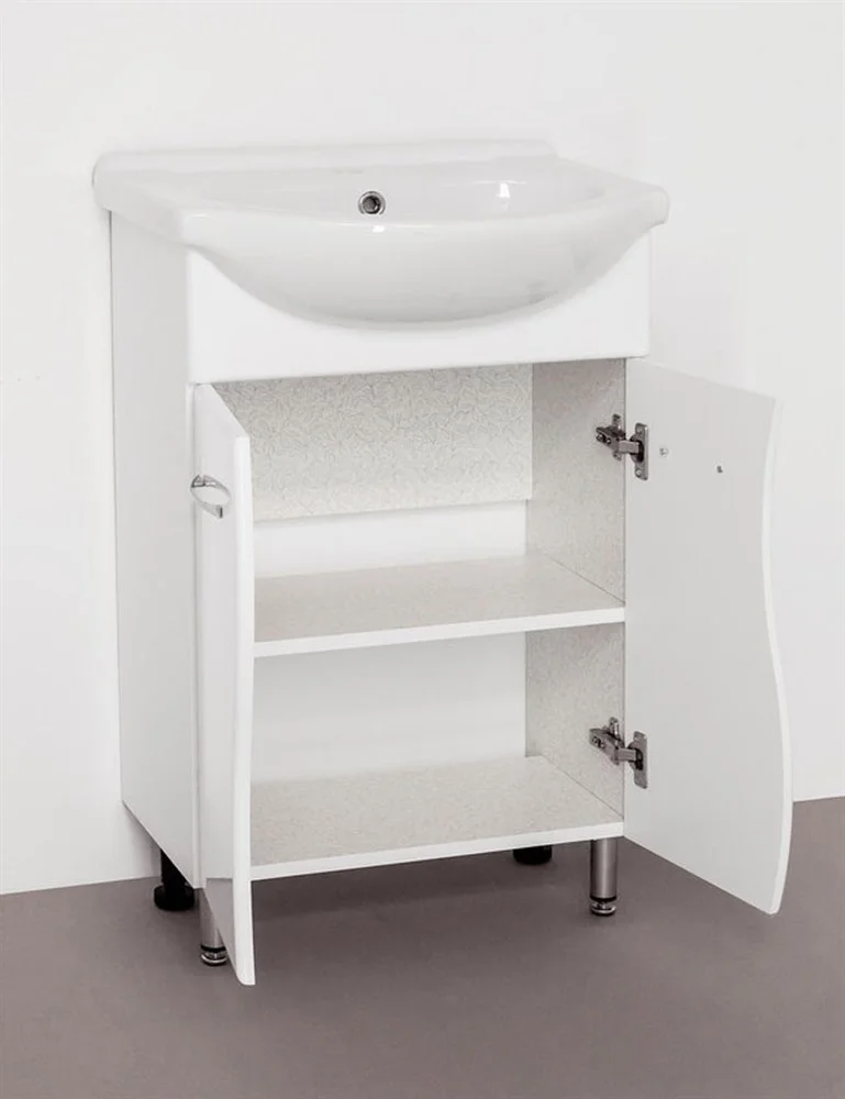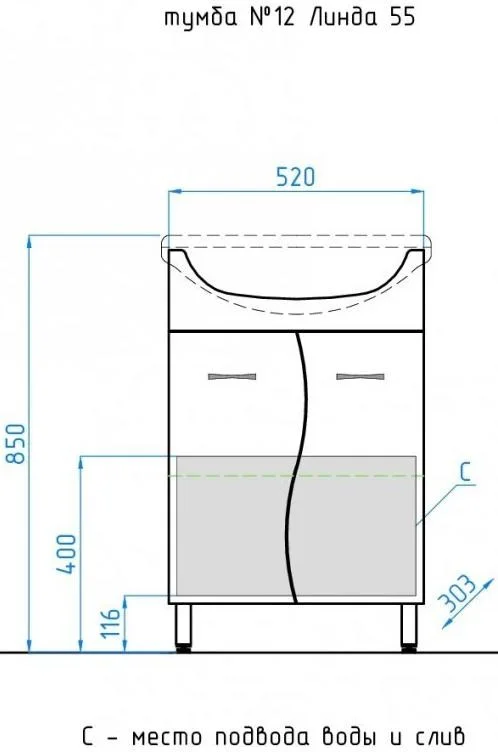 Тумба напольная бренда "Style Line" Эко Стандарт 12. Фурнитура - хром, эксклюзивный декор "Луино" - ламинация внутренней стороны изделия. Направляющие полного выдвижения Hettich; сборка изделия с помощью эксцентриковых стяжек Hafele; все материалы полностью влагостойкие. Данная тумба предусматривает открытую подводку воды