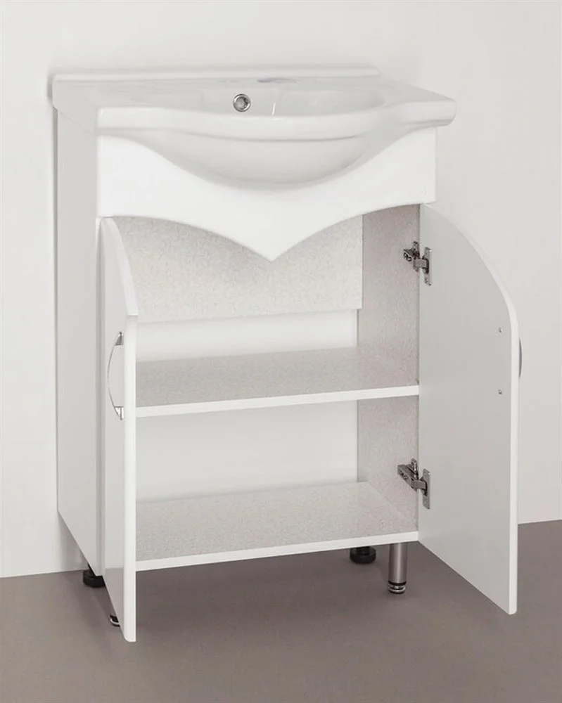 Тумба напольная бренда "Style Line" Эко Стандарт 15. Фурнитура - хром, эксклюзивный декор "Луино" - ламинация внутренней стороны изделия. Направляющие полного выдвижения Hettich; сборка изделия с помощью эксцентриковых стяжек Hafele; все материалы полностью влагостойкие. Данная тумба предусматривает открытую подводку воды
