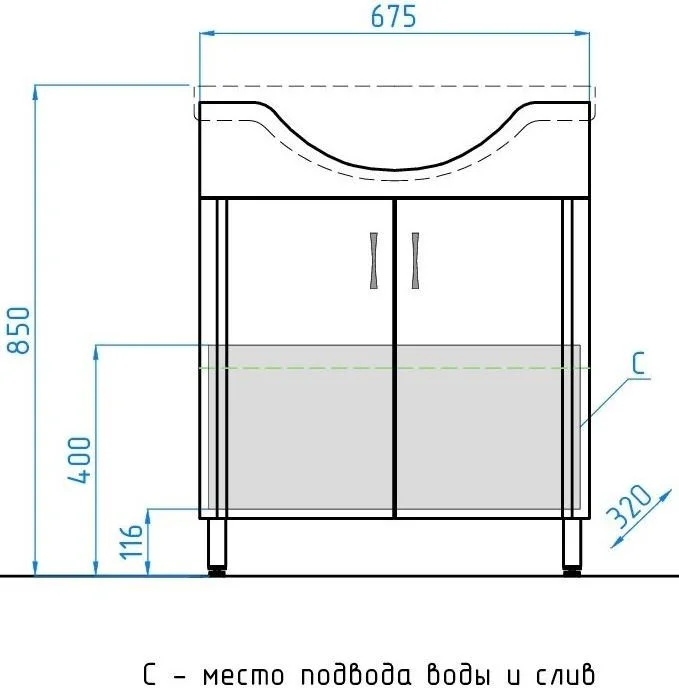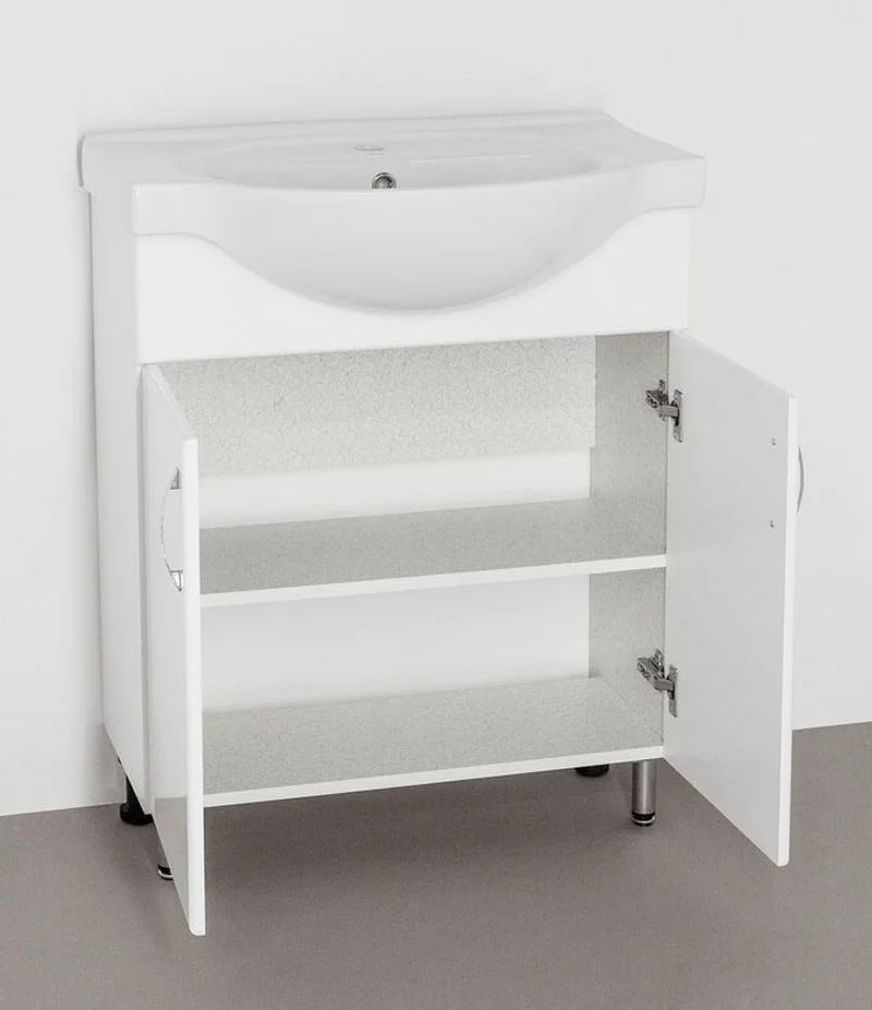 Тумба напольная бренда "Style Line" Эко Стандарт 23. Фурнитура - хром, эксклюзивный декор "Луино" - ламинация внутренней стороны изделия. Направляющие полного выдвижения Hettich; сборка изделия с помощью эксцентриковых стяжек Hafele; все материалы полностью влагостойкие. Данная тумба предусматривает открытую подводку воды