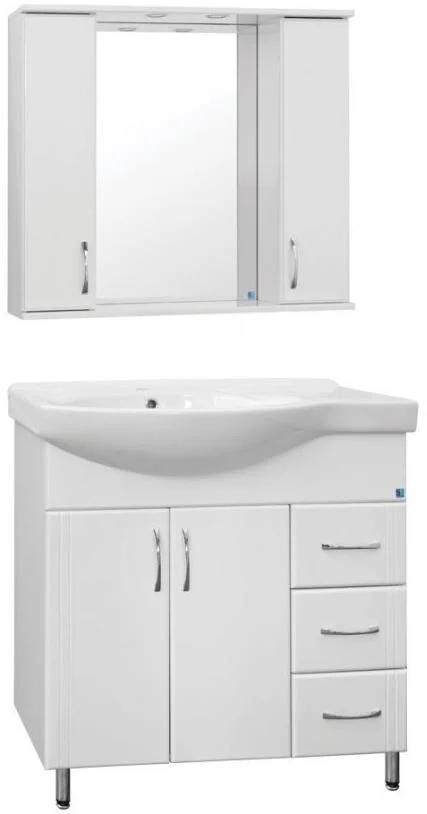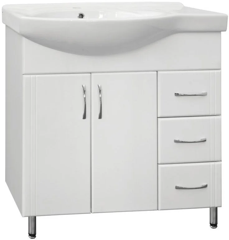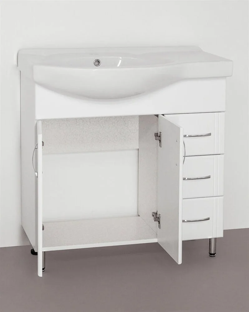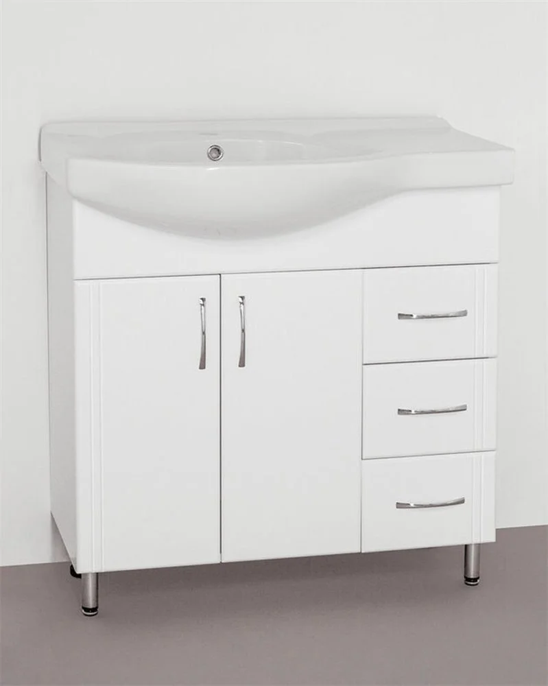 Тумба напольная бренда "Style Line" Эко Стандарт 25 с 3 ящиками. Фурнитура - хром, эксклюзивный декор "Луино" - ламинация внутренней стороны изделия. Направляющие полного выдвижения Hettich; сборка изделия с помощью эксцентриковых стяжек Hafele; все материалы полностью влагостойкие. Данная тумба предусматривает открытую подводку воды