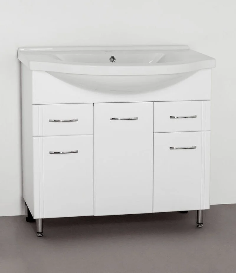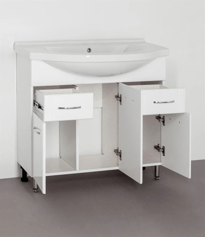 Тумба напольная бренда "Style Line" Эко Стандарт 26 с 2 ящиками. Фурнитура - хром, эксклюзивный декор "Луино" - ламинация внутренней стороны изделия. Направляющие полного выдвижения Hettich; сборка изделия с помощью эксцентриковых стяжек Hafele; все материалы полностью влагостойкие. Данная тумба предусматривает открытую подводку воды
