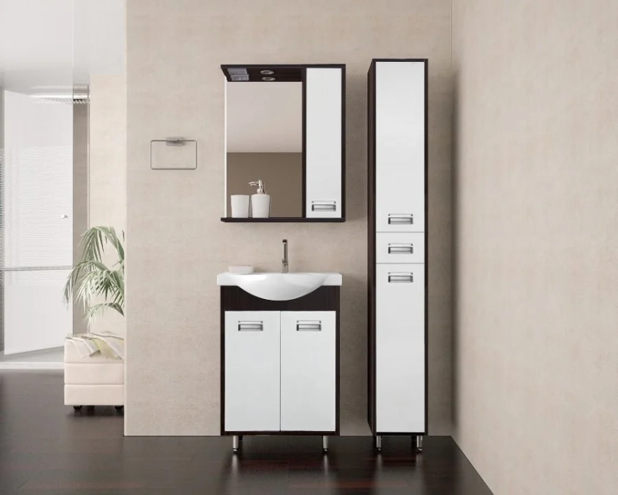 Тумба напольная бренда "Style Line" Эко Стиль (W) 9. Цветовое сочетание белого и венге придает данной коллекции лаконизм и современность. Фурнитура - хром, эксклюзивный декор "Луино" - ламинация внутренней стороны изделия. Направляющие полного выдвижения Hettich; сборка изделия с помощью эксцентриковых стяжек Hafele; все материалы полностью влагостойкие. Данная тумба предусматривает открытую подводку воды