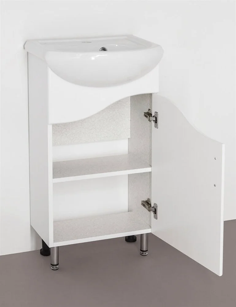 Тумба напольная бренда "Style Line" Эко Волна 2. Плавные линии в дизайне данной серии помогают создать мягкий и уютный интерьер. Фурнитура - хром, эксклюзивный декор "Луино" - ламинация внутренней стороны изделия. Направляющие полного выдвижения Hettich; сборка изделия с помощью эксцентриковых стяжек Hafele; все материалы полностью влагостойкие. Данная тумба предусматривает открытую подводку воды