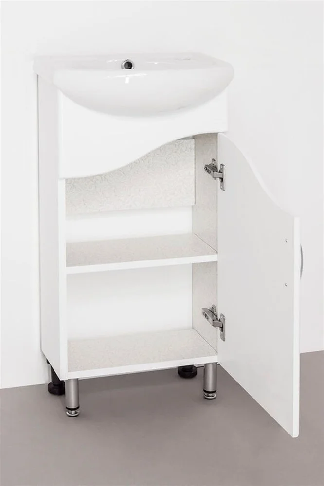 Тумба напольная бренда "Style Line" Эко Волна 2. Плавные линии в дизайне данной серии помогают создать мягкий и уютный интерьер. Фурнитура - хром, эксклюзивный декор "Луино" - ламинация внутренней стороны изделия. Направляющие полного выдвижения Hettich; сборка изделия с помощью эксцентриковых стяжек Hafele; все материалы полностью влагостойкие. Данная тумба предусматривает открытую подводку воды