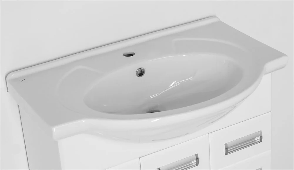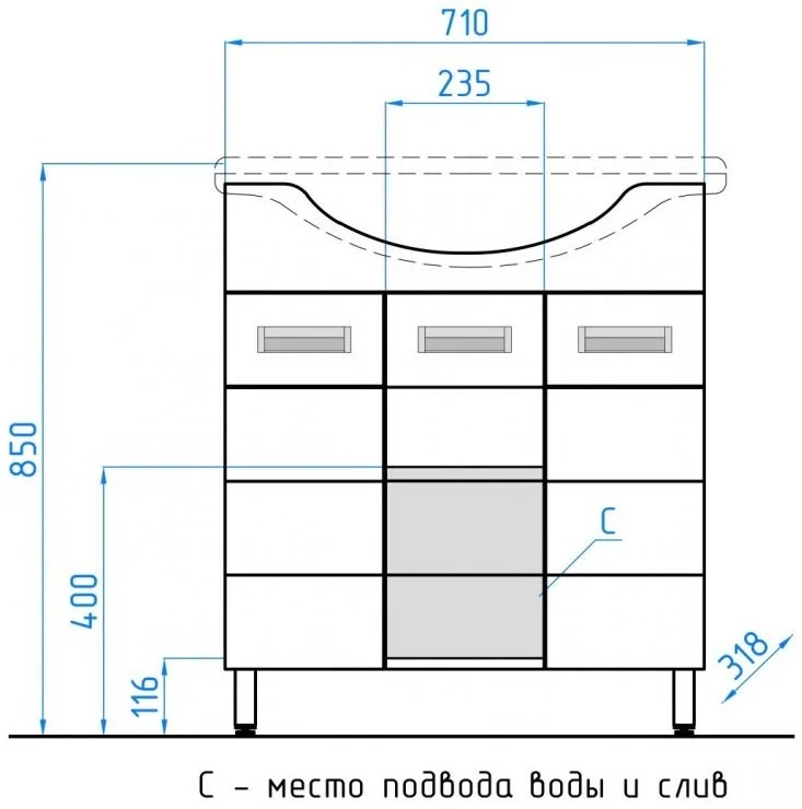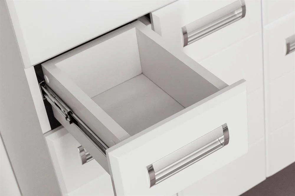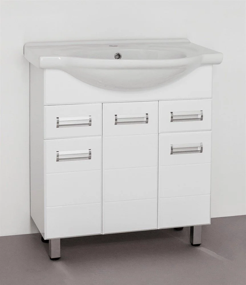 Тумба напольная "Ирис" с прямоугольными фасадами современного дизайна, декорированная врезными ручками хром/матовый хром. Направляющие полного выдвижения Hettich, обеспечивают плавность и бесшумность хода, высокую надежность и прочность. Данная тумба предусматривает открытую подводку воды