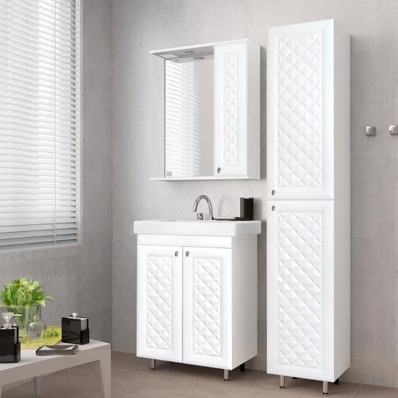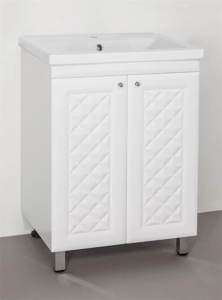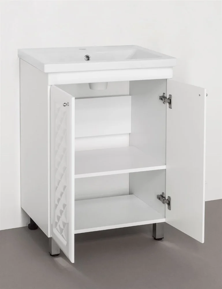 Тумба напольная бренда "Style Line" коллекции "Канна" с современной 3D фрезеровкой фасада, которая придает мебели индивидуальность и особый колорит. Фурнитура - хром, петли на дверцах с механизмом плавного закрывания. Направляющие полного выдвижения Hettich обеспечивают плавность и бесшумность хода, высокую надежность и прочность. Данная тумба предусматривает открытую подводку воды. Боковины изделий в пленке в цвет фасадов