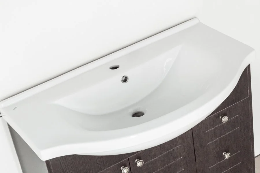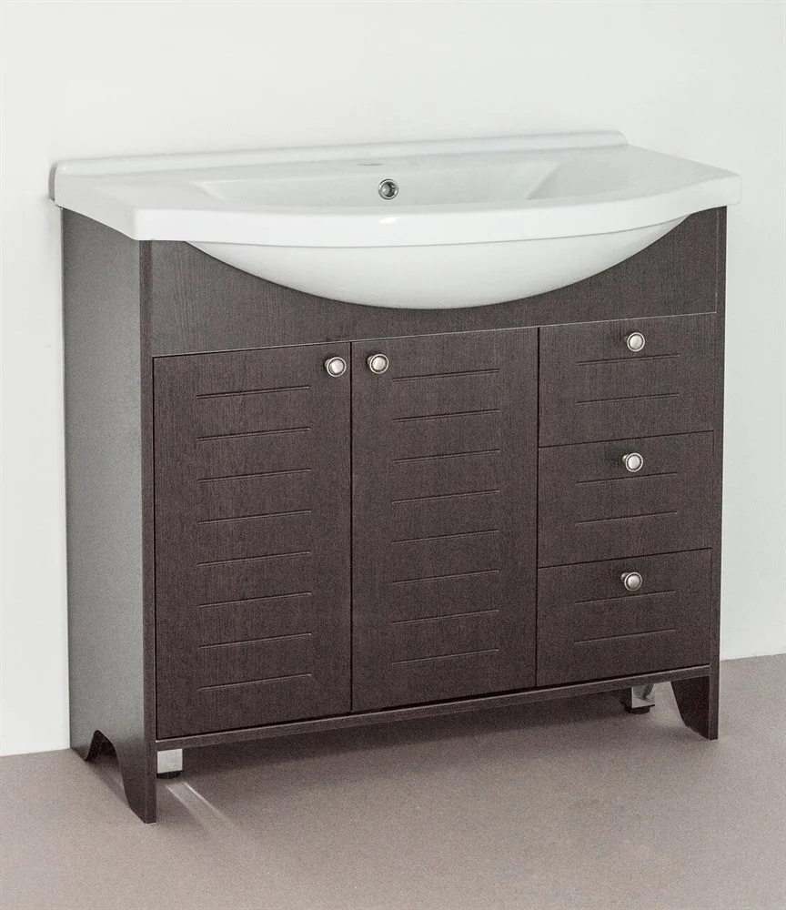 Тумба напольная бренда "Style Line" коллекции "Кантри" имеет оригинальные ручки "под бронзу", петли на дверцах с механизмом плавного закрывания, декоративную фрезеровку фасадов. Сборка изделия с помощью эксцентриковых стяжек Hafele; все материалы полностью влагостойкие. Данная тумба предусматривает открытую подводку воды