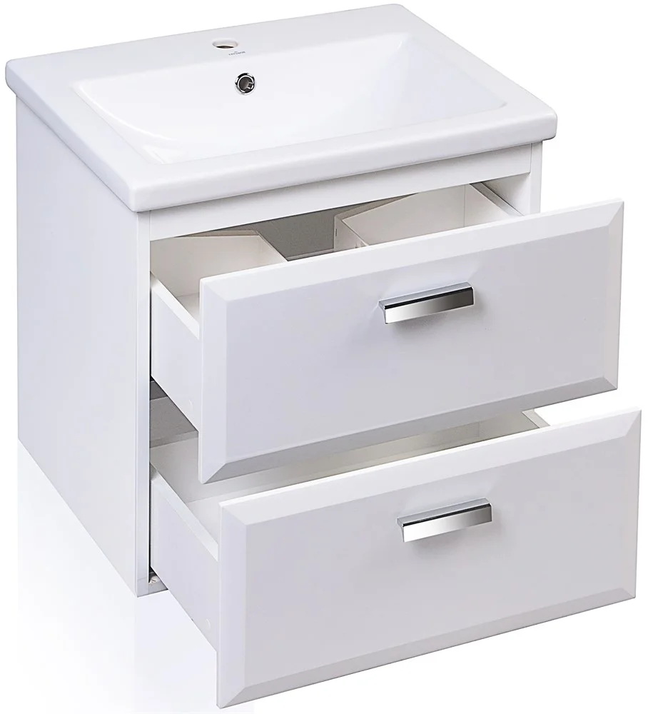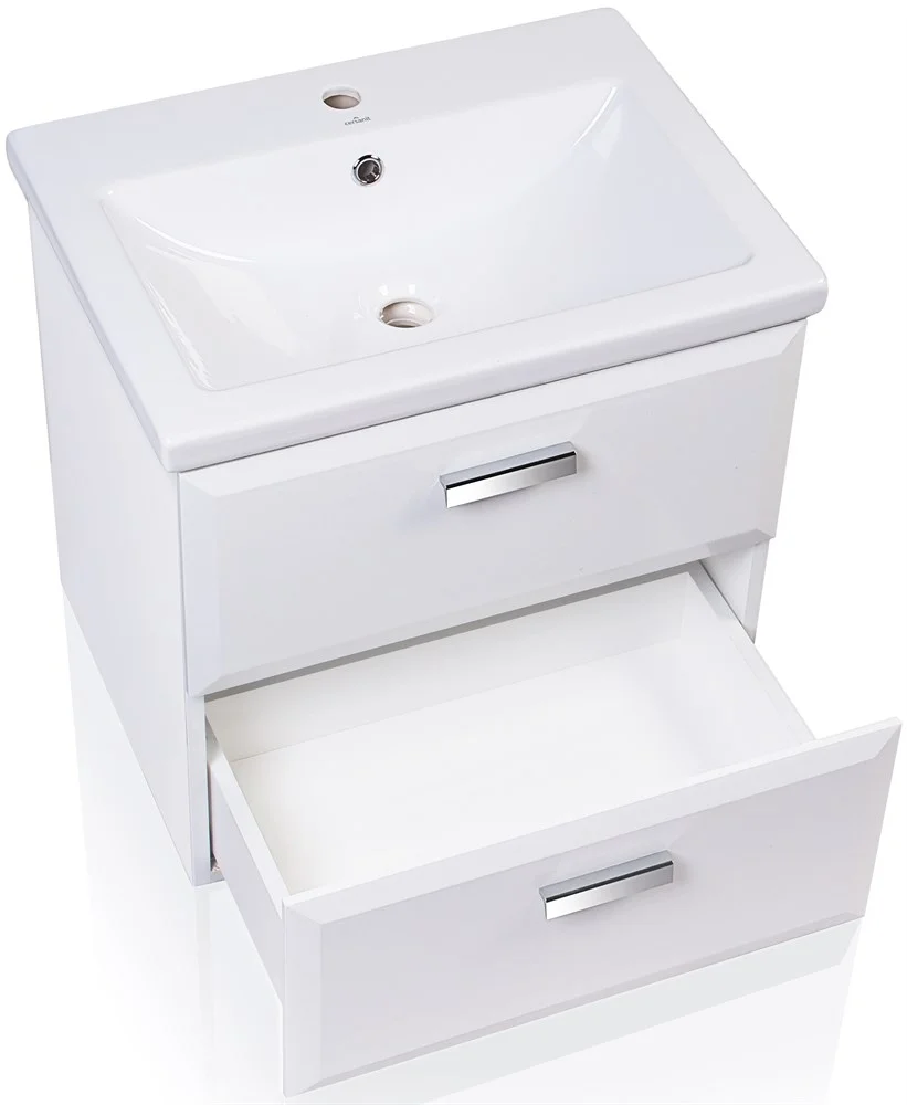 Современная подвесная тумба с раковиной из коллекции Лотос от производителя Style Line является предметом, который способен стать незаменимым в помещении ванной. Надежная прочная пленка матового белого цвета покрывает корпус, благодаря этому он защищен от царапин и воздействия внешней среды, и к тому же выглядит эффектно и оригинально. Выдвижные ящики оснащены качественными механизмами доводчиков, благодаря чему они выдвигаются плавно и бесшумно, даже если полностью заполнены. Навесная конструкция изделия значительно облегчает уборку помещения.