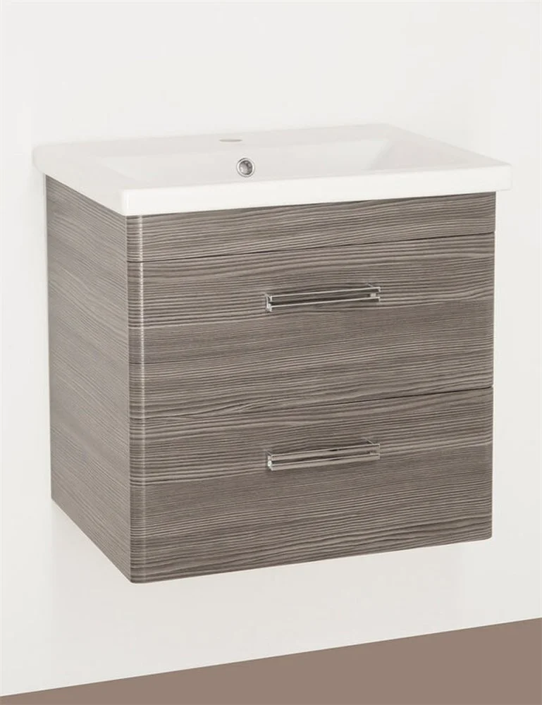 Тумба подвесная бренда "Style Line" коллекции "Лотос" с двумя ящиками в цвете шелк зебрано. Фурнитура - хром. Доводчики "Hettich" обеспечивают плавность и бесшумность хода, высокую надежность и прочность. Боковины изделий в пленке в цвет фасадов.