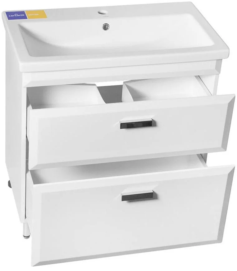 Напольная тумба с раковиной линейки Лотос шириной 70 см от производителя Style Line, несмотря на простые формы и универсальный белый цвет, выглядит стильно и оригинально. Дополнительно изделие играет огромную практичную роль, так как помогает «спрятать» трубы и коммуникации. А также в ее вместительных выдвижных ящиках можно хранить множество предметов и средств, предназначенных для ухода за телом либо уборки помещения. Причем сохранность вещей гарантирована благодаря высококачественным влагостойким материалам.