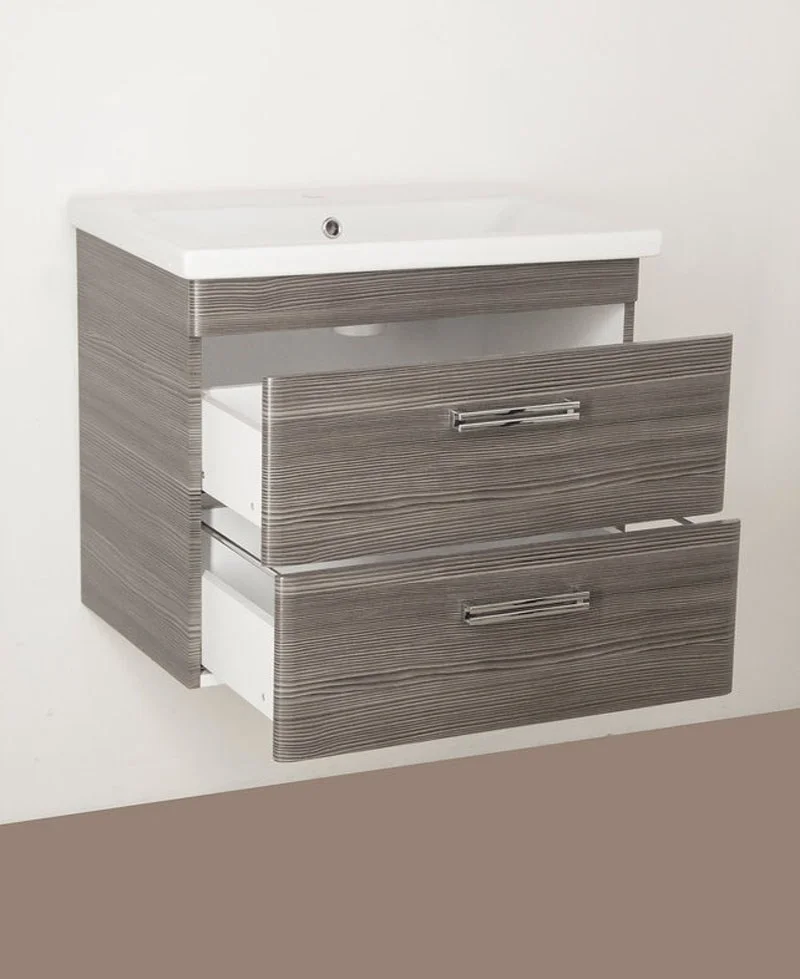 Тумба подвесная бренда "Style Line" коллекции "Лотос" с двумя ящиками в цвете шелк зебрано. Фурнитура - хром. Доводчики "Hettich" обеспечивают плавность и бесшумность хода, высокую надежность и прочность. Боковины изделий в пленке в цвет фасадов.