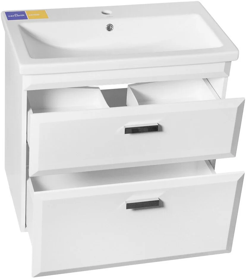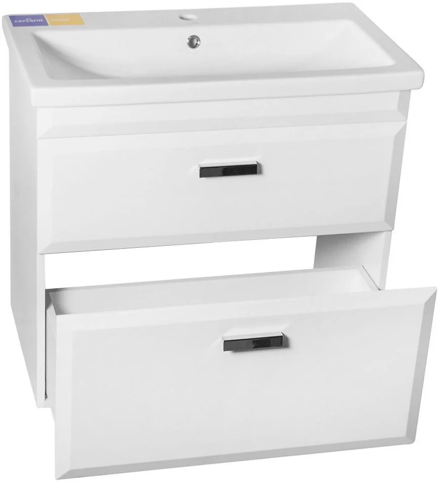 Широкая подвесная тумба с раковиной из коллекции Лотос 80 см изготовлена производителем Style Line и способна не только украсить интерьер современной ванной комнаты, но и играет огромную практичную роль. Благодаря тому, что поверхности корпуса покрыты плотной матовой пленкой белого цвета, оно имеет красивый внешний вид и надежно защищено от царапин и других повреждений. К тому же прочная хромированная фурнитура и импортные механизмы креплений и доводчиков гарантируют безопасность и комфорт при пользовании изделием.