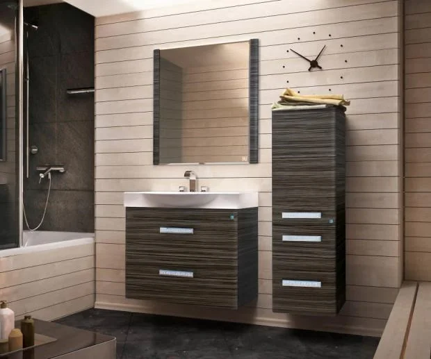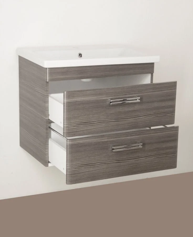 Тумба подвесная бренда "Style Line" коллекции "Лотос" с двумя ящиками в цвете шелк зебрано. Фурнитура - хром. Доводчики "Hettich" обеспечивают плавность и бесшумность хода, высокую надежность и прочность. Боковины изделий в пленке в цвет фасадов.