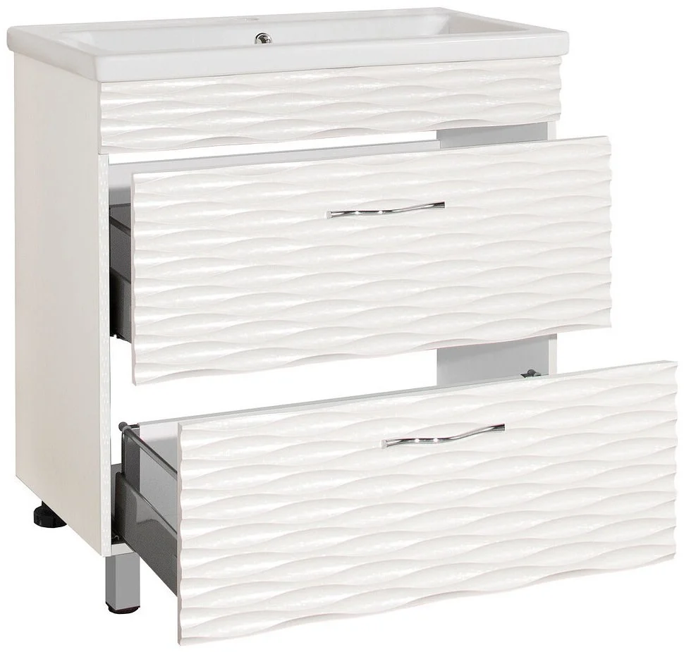 Тумба напольная бренда "Style Line" коллекции "Ассоль" с изысканной 3D фрезеровкой фасада, которая придает мебели неповторимый стиль. Перламутровые переливы цвета в данной коллекции станут отличным украшением в интерьере. Фурнитура - хром, петли на дверцах с механизмом плавного закрывания. Доводчики "Blum" обеспечивают плавность и бесшумность хода, высокую надежность и прочность. Данная тумба предусматривает открытую подводку воды. Боковины изделий в пленке в цвет фасадов