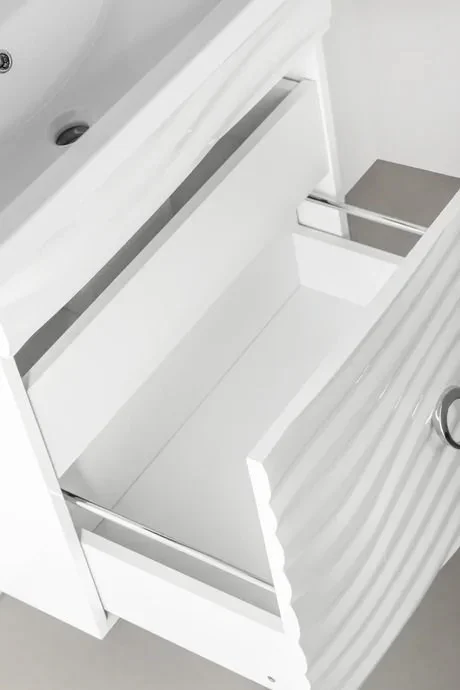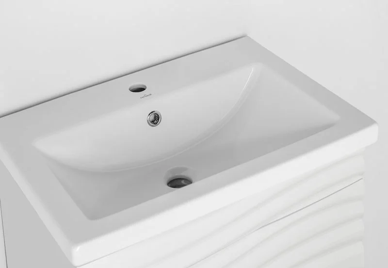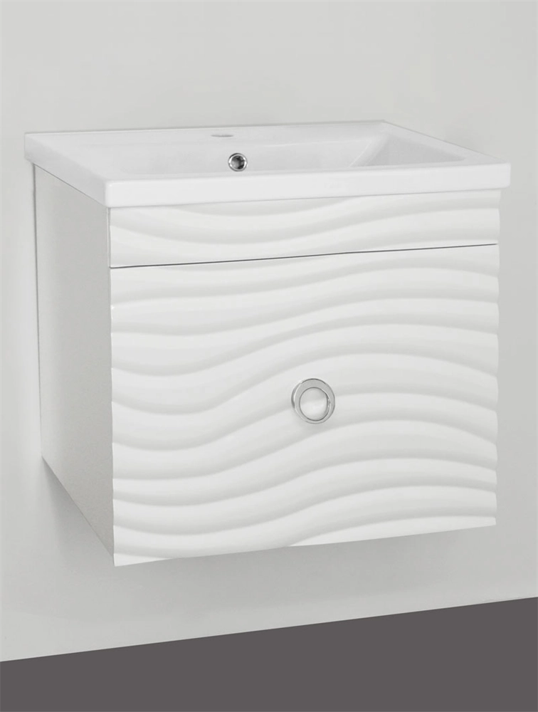 Тумба подвесная бренда "Style Line" коллекции "Вероника" с оригинальной 3D фрезеровкой фасада и доводчиками Hettich. Фурнитура - хром. Мягкие плавные линии необычной фрезеровки фасада создают оригинальные формы, способные украсить любой интерьер. Сборка изделия с помощью эксцентриковых стяжек Hafele; все материалы полностью влагостойкие.Боковины изделий в пленке в цвет фасадов. Данная тумба предусматривает открытую подводку воды