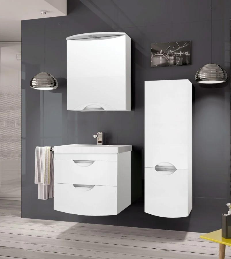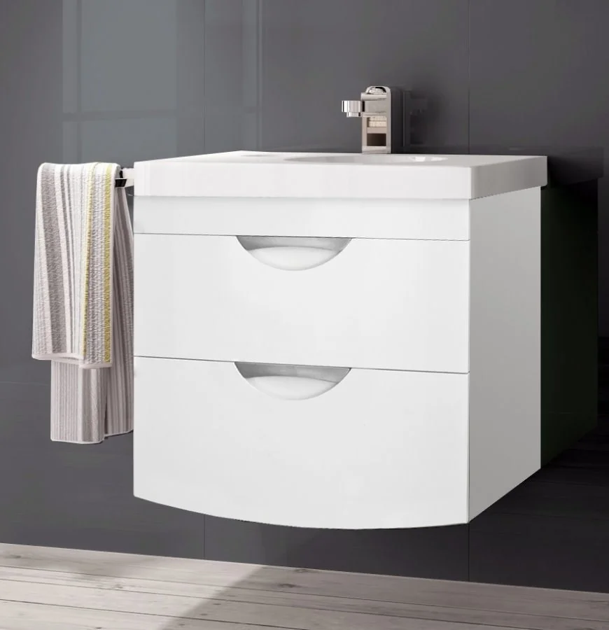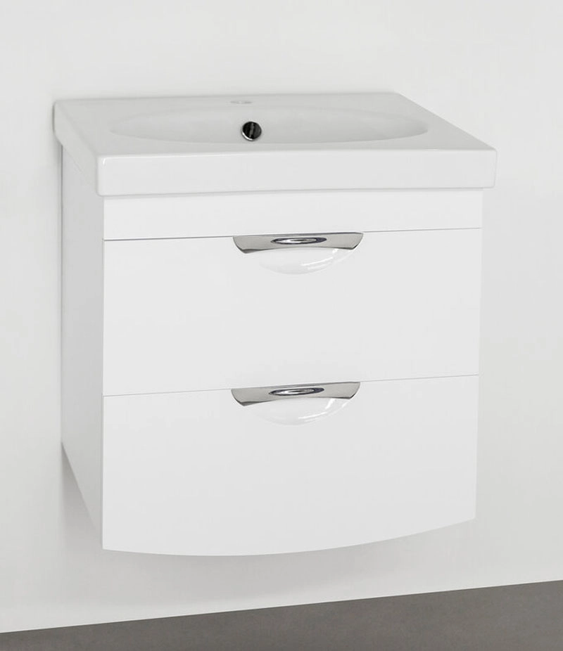 Тумба подвесная бренда "Style Line" коллекции "Жасмин 2" с двумя ящиками и стильными врезными ручками. Фурнитура - хром. Доводчики "Hettich" обеспечивают плавность и бесшумность хода, высокую надежность и прочность. Боковины изделий в пленке в цвет фасадов. Данная тумба предусматривает открытую подводку воды