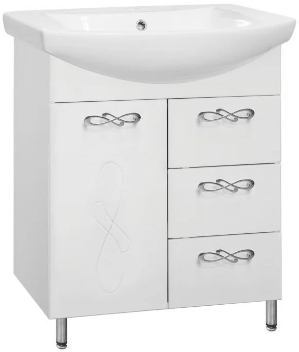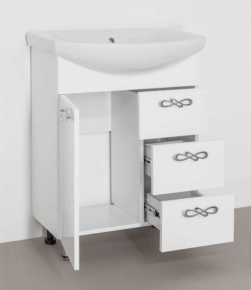 Тумба напольная "Венеция" с элегантной фрезеровкой фасада и декоративными ручками, которые придают всей коллекции особый шарм . Фурнитура - хром, петли на дверцах с механизмом плавного закрывания. Направляющие полного выдвижения Hettich, обеспечивающие плавность и бесшумность хода, высокую надежность и прочность. Данная тумба предусматривает открытую подводку воды