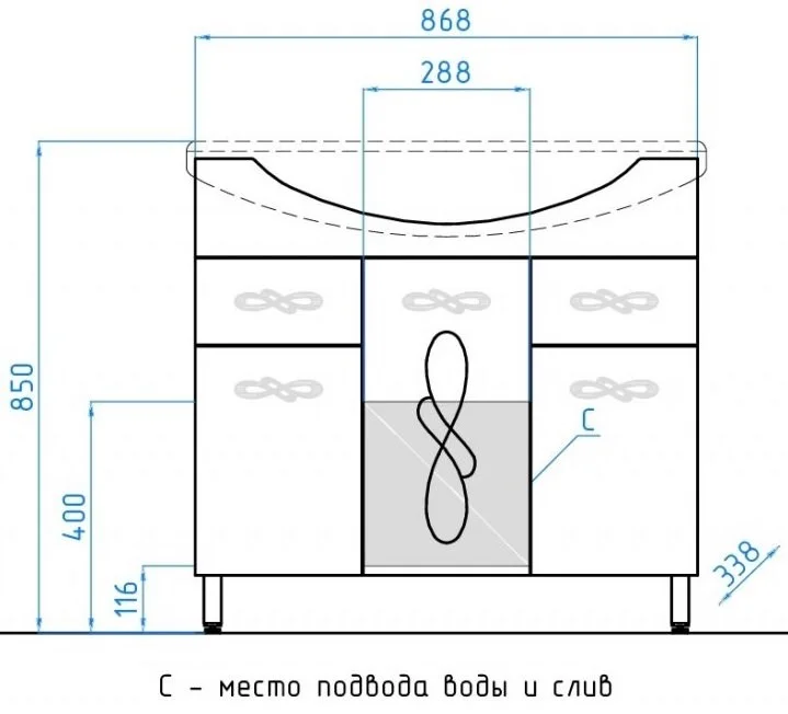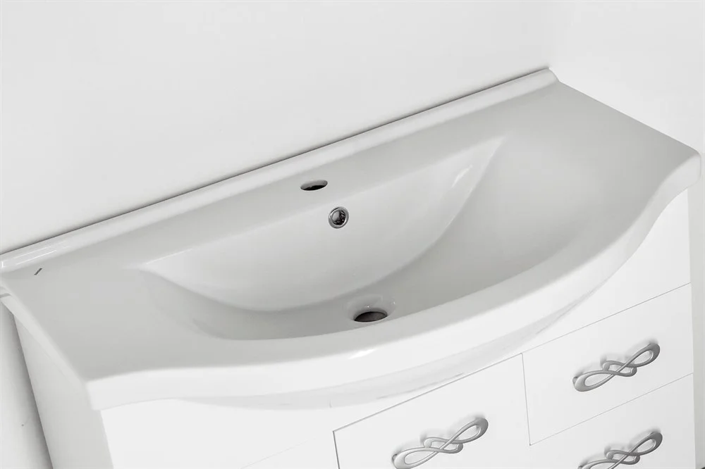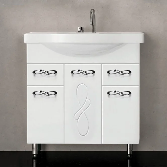 Тумба напольная "Венеция" с элегантной фрезеровкой фасада и декоративными ручками, которые придают всей коллекции особый шарм . Фурнитура - хром, петли на дверцах с механизмом плавного закрывания. Направляющие полного выдвижения Hettich, обеспечивающие плавность и бесшумность хода, высокую надежность и прочность. Данная тумба предусматривает открытую подводку воды
