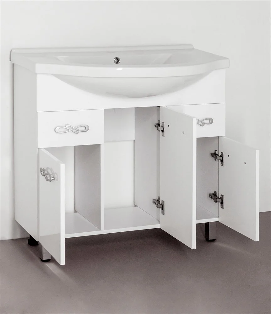 Тумба напольная "Венеция" с элегантной фрезеровкой фасада и декоративными ручками, которые придают всей коллекции особый шарм . Фурнитура - хром, петли на дверцах с механизмом плавного закрывания. Направляющие полного выдвижения Hettich, обеспечивающие плавность и бесшумность хода, высокую надежность и прочность. Данная тумба предусматривает открытую подводку воды
