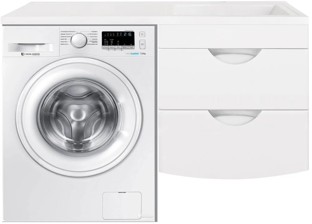 Тумба бренда "Style Line" коллекции "Жасмин-2" со стильными врезными ручками. Фурнитура - хром, направляющие полного выдвижения Hettich; сборка изделия с помощью эксцентриковых стяжек Hafele; все материалы полностью влагостойкие. Данная тумба предусматривает открытую подводку воды