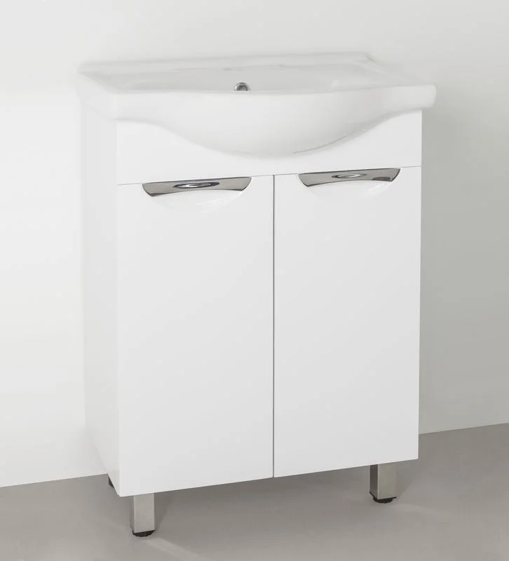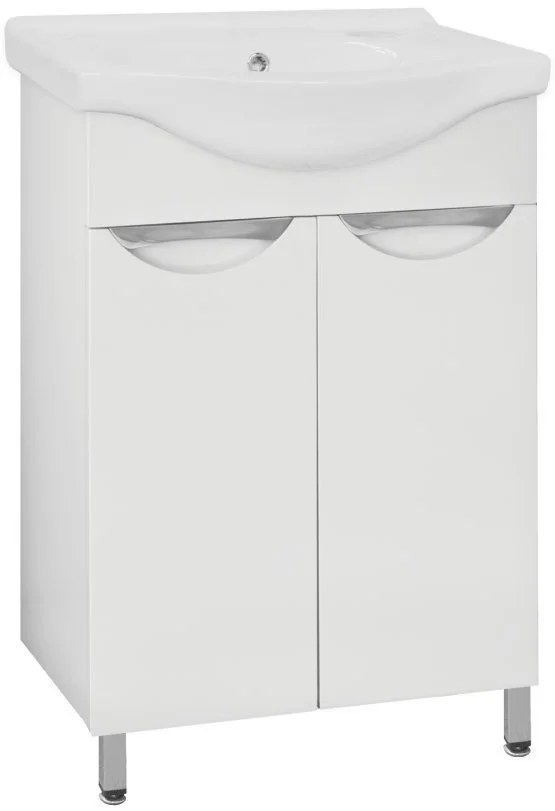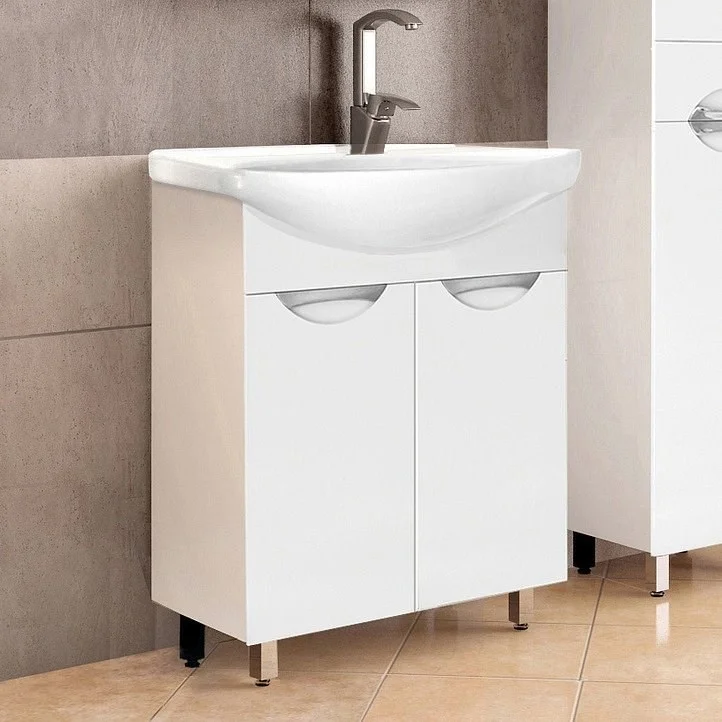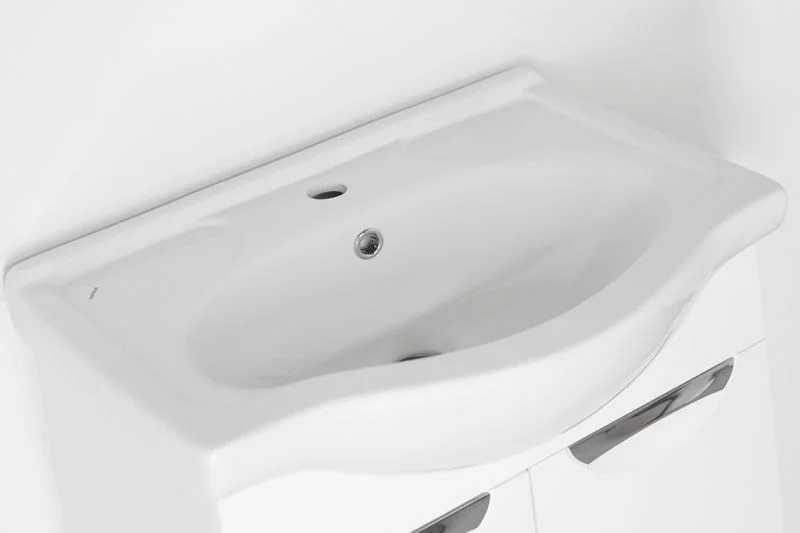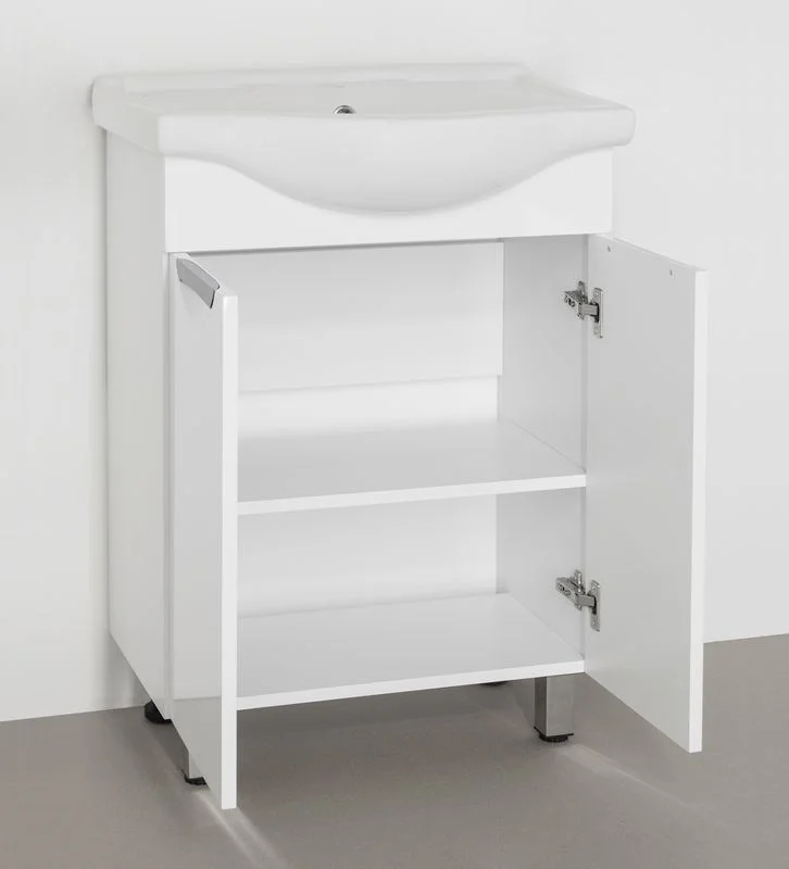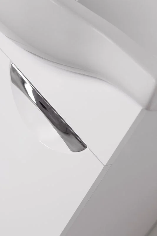 Тумба напольная бренда "Style Line" коллекции "Жасмин" со стильными врезными ручками. Фурнитура - хром, направляющие полного выдвижения Hettich; сборка изделия с помощью эксцентриковых стяжек Hafele; все материалы полностью влагостойкие. Данная тумба предусматривает открытую подводку воды