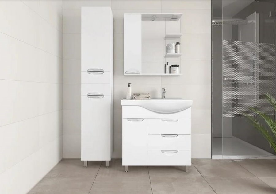 Тумба под раковину Style Line Жасмин 82 (3 ящ.) с корзиной, Коралл 82, левая ЛС-00000526