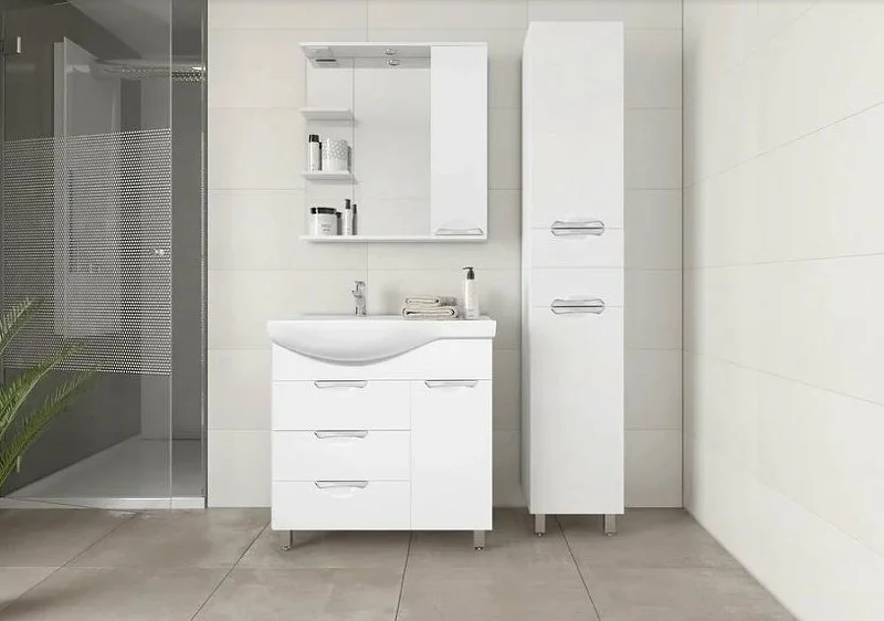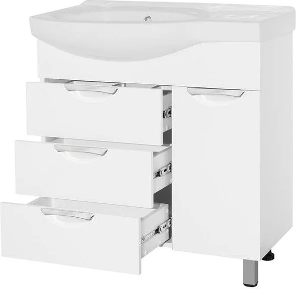 Тумба под раковину Style Line Жасмин 82 (3 ящ.) с корзиной, Коралл 82, правая ЛС-00000527