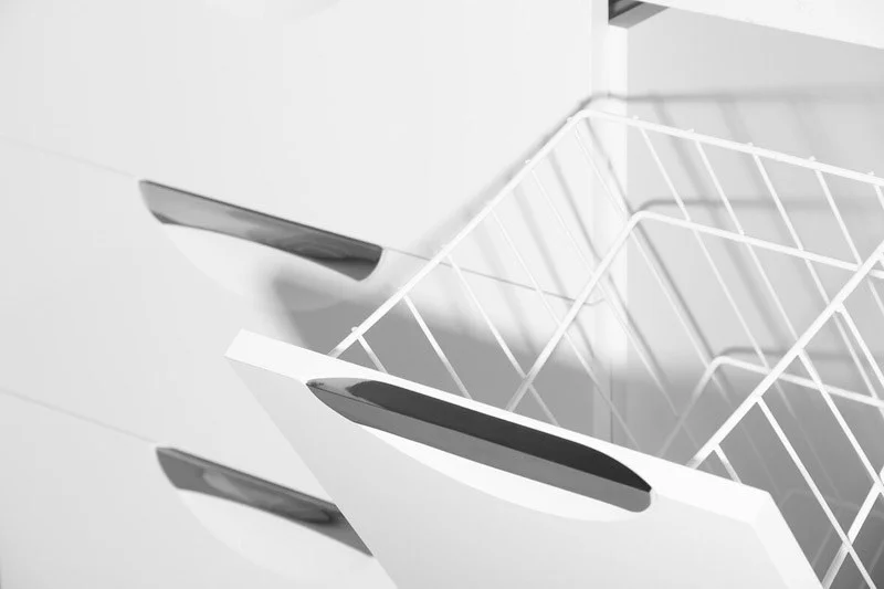 Тумба с бельевой корзиной бренда "Style Line" коллекции "Жасмин" со стильными врезными ручками. Фурнитура - хром, направляющие полного выдвижения Hettich; сборка изделия с помощью эксцентриковых стяжек Hafele; все материалы полностью влагостойкие