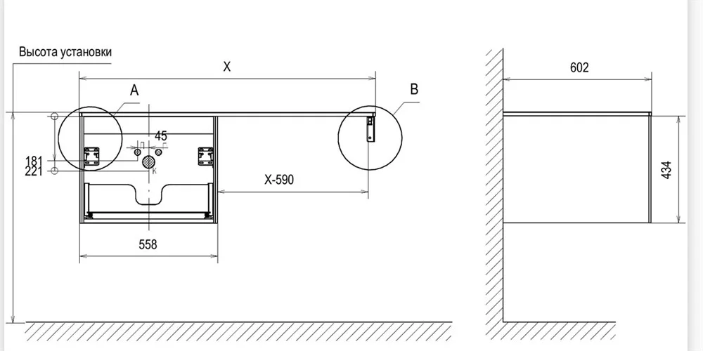 Купить Тумбы подвесные производства Velvex (Россия), коллекция Klaufs, код товара: 225224 можно выгодно в Сантемо.ру: