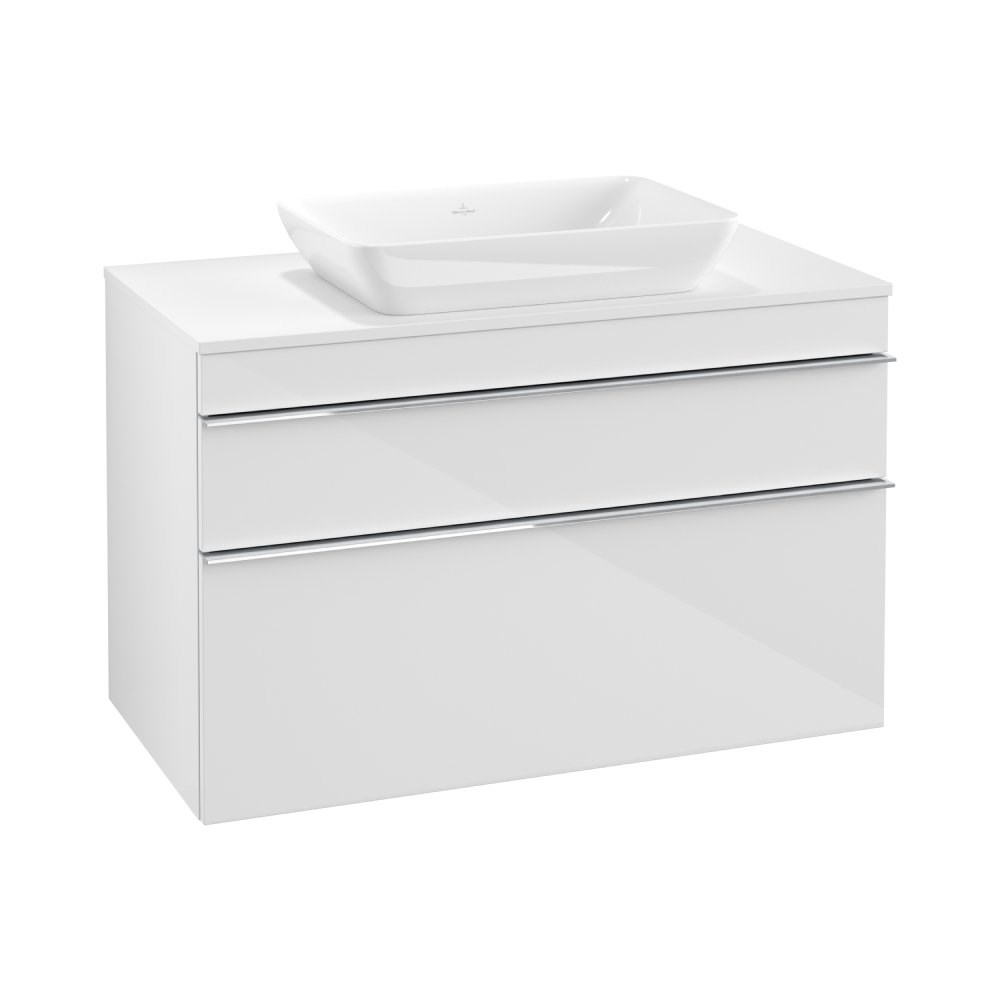 В мебели для ванной с полным выдвижением выдвижные ящики можно полностью выдвигать, благодаря этому хорошо видно все их содержимое.