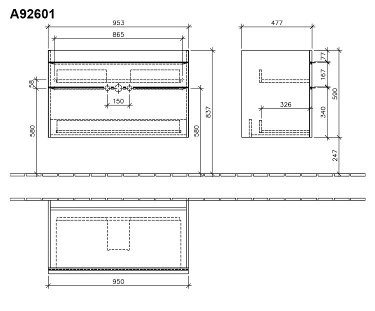 В мебели для ванной с полным выдвижением выдвижные ящики можно полностью выдвигать, благодаря этому хорошо видно все их содержимое.