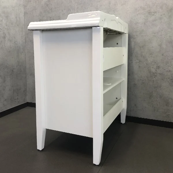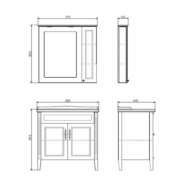 Напольная тумба с двумя распашными створками, оснащенными петлями с плавным закрыванием. Корпус и фасады из МДФ покрыты белой глянцевой эмалью. Ножки из массива натурального дерева. Тумба подготовлена для подключения водоснабжения снизу.