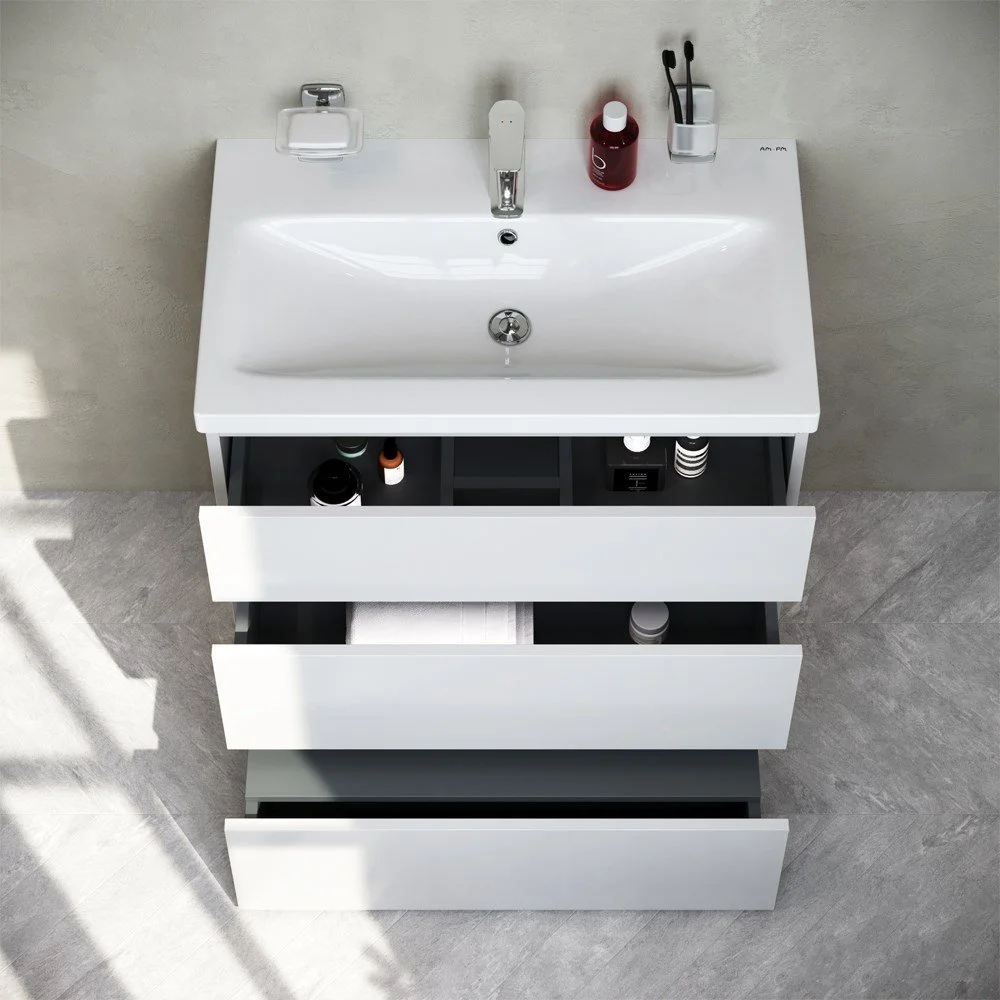 Тумба с раковиной AM.PM Gem S M91-FSX0752-WC0752WG напольная, 75 см, 3 ящика, белый глянец