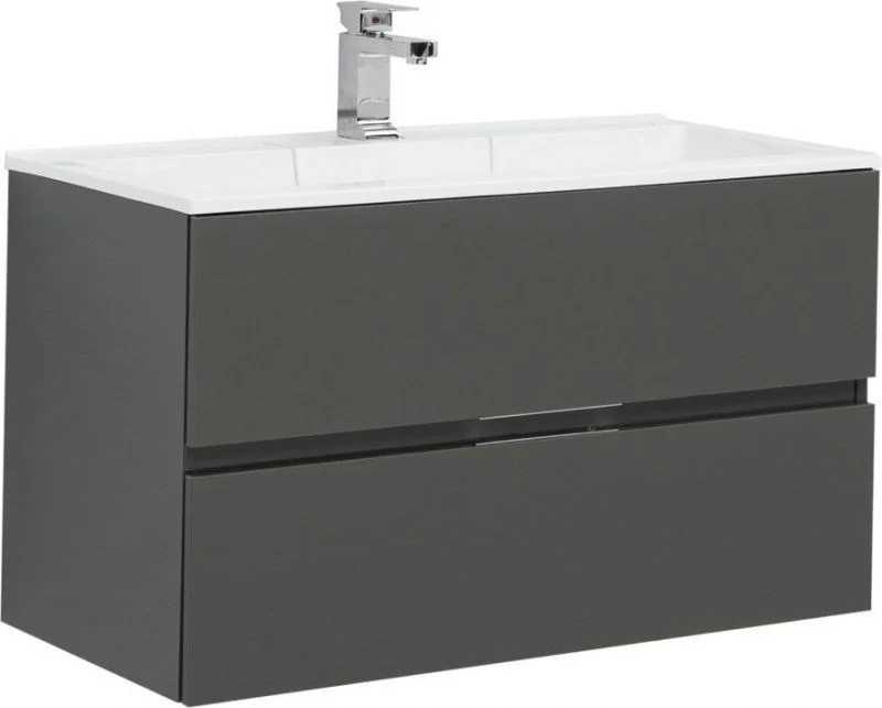 Тумба с раковиной Акванет Алвита в цвете "серый антрацит" шириной 90 см придаст интерьеру ванной комнаты нотку особого очарования и уникальности, благодаря своей нестандартной красивой отделке. Покрытие имеет высокие эксплуатационные характеристики, в частности, влагонепроницаемость, прочность и простоту в уходе. Современный дизайн демонстрирует аккуратный минимализм геометрически четких форм, где основная идея подчинена максимальной функциональности. Вместительная тумба с верхним и нижним выдвижными ящиками создает дополнительное пространство, где будут надежно скрыты от влаги банные принадлежности. Ящики тумбы закрываются легко и бесшумно, благодаря механизму доводчика. Тумба комплектуется раковиной из литьевого мрамора «Фортуна», которая имеет уникальную конструкцию слива: вместо привычного расположения по центру, он находится в скрытом отсеке под съемной крышкой. Смещение слива и сифона к стене, в сторону канализационного отвода, избавляет от необходимости менять устройство верхнего ящика тумбы и делать в