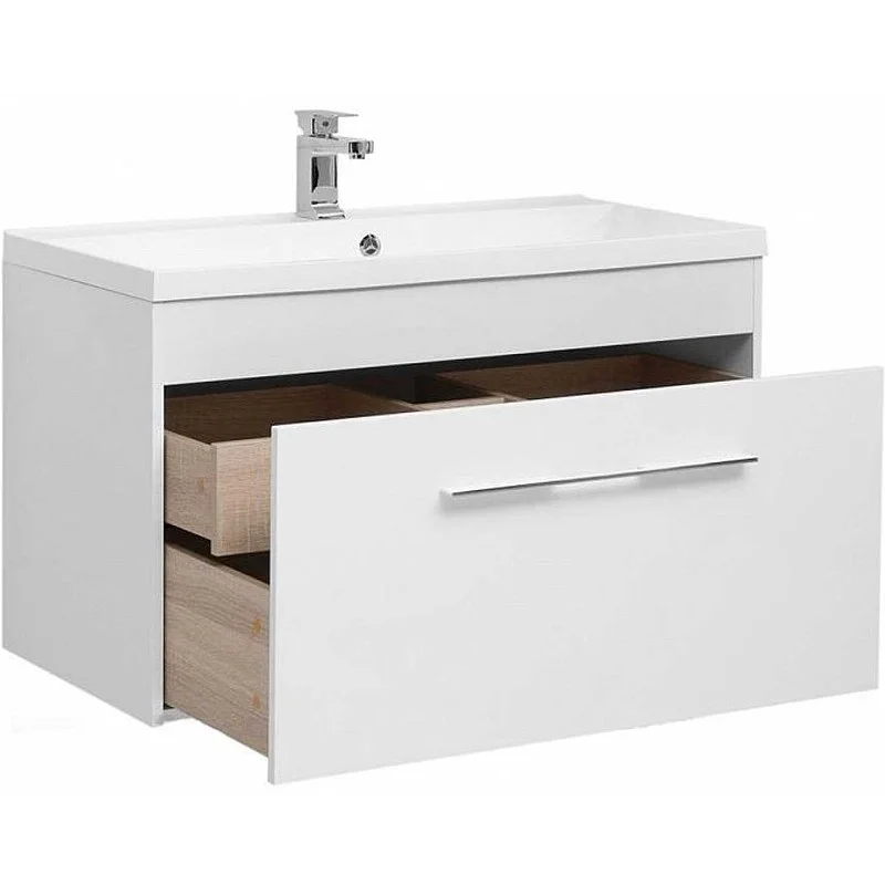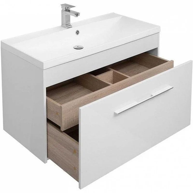 Тумба с раковиной Aquanet Августа 100 белого цвета заинтересует приверженцев классических белых оттенков в интерьере ванной комнаты. Корпус тумбы шириной 100 см выполнен из ламинированного влагостойкого ДСП, а фасады - из МДФ, покрытого белой краской в несколько слоев. У изделия один ящик, но он с секретом. Внутри скрыт еще один, неглубокий, но очень удобный, разделенный на несколько отделений, где удобно хранить разнообразную мелочевку. Механизм открывания снабжен доводчиками. В модели используются направляющие Quadro немецкого производителя Hettich, которые работают по принципу шарикоподшипников. Они обеспечивают тихое и плавное скольжение, точность направления, исключение перекашивания ящика даже при его полном выдвижении. Оснащены направляющие даже функцией самоочистки. Тумба комплектуется раковиной из литьевого мрамора Нота new производства партнеров Aquanet компании «Цвет и стиль». Для подвешивания изделий предусмотрена надежная фурнитура немецкой компании Hafele.