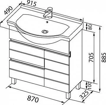 Тумба с раковиной Aquanet Доминика 90 R белый (раковина Эльбрус) 00241326