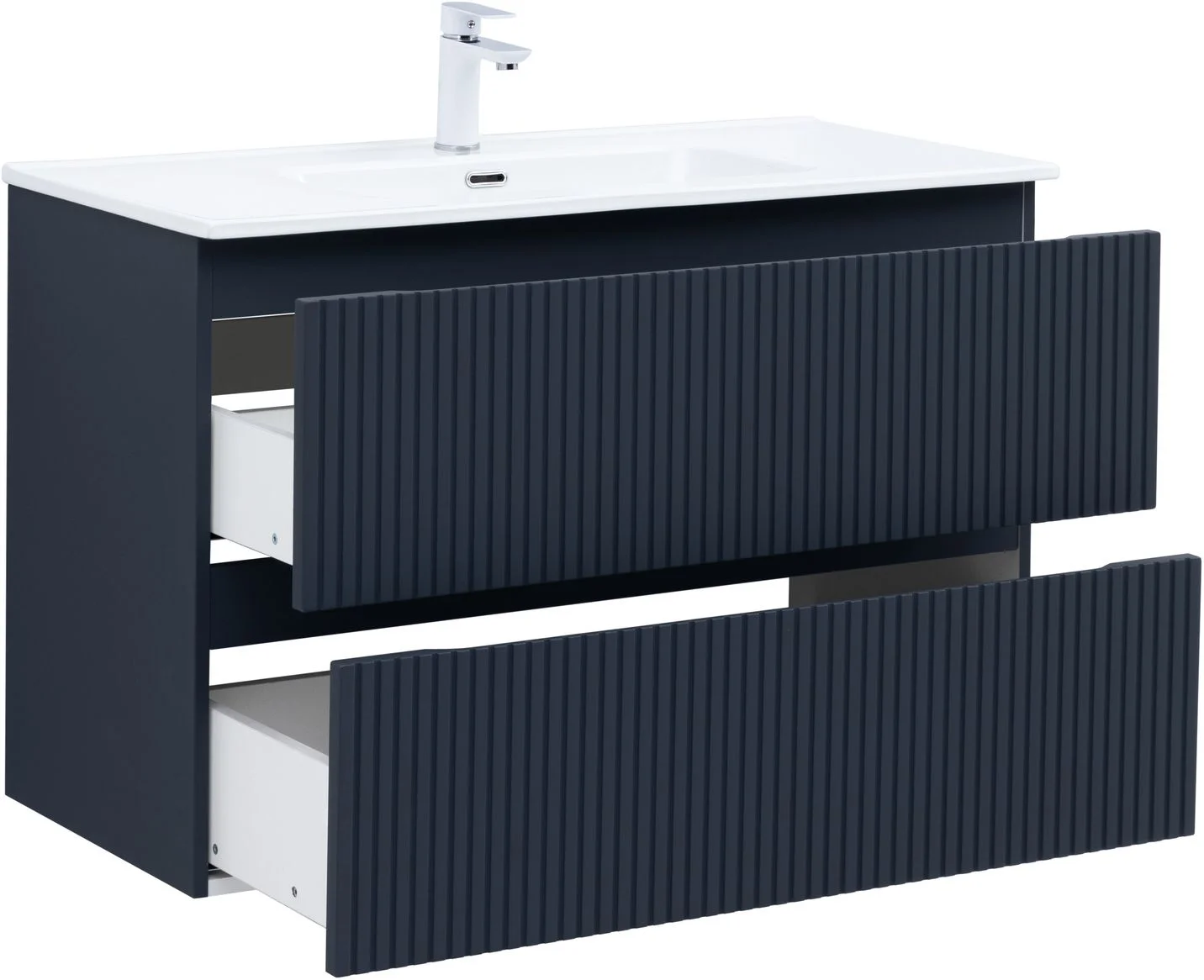 Aquanet Джейн 100 (арт. 00332537) - тумба с раковиной для ванной комнаты из коллекции Jane, цвет маренго. Модель можно применять в проектах с универсальной ориентацией установки.