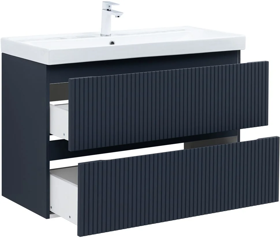 Комплектация включает тумбу с раковиной. Остальная сантехническая арматура, включая смеситель и сифон, подбирается отдельно.