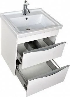 Тумба в ванную комнату Эвора. Мебель с благородным оттенком отделки наделяет ванную комнату уютом и создает атмосферу истинной роскоши. Тумба имеет вместительные выдвижные ящики и хромированные ручки нестандартной формы. Механизм доводчика обеспечивает плавное движение и закрытие ящиков. Широкая керамическая раковина производства известного бренда Sanovit располагается в виде столешницы. Тумба Акванет Эвора подвешивается к стене. Если необходим напольный вариант, можно дополнительно приобрести комплект ножек.