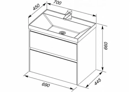Производители позаботились о деталях. Ящики лишены выступающих деталей, ручки интегрированы в фасад. Тумбу шириной 70 см можно из подвесного элемента преобразовать в напольный, просто докупив универсальные ножки. Раковина из литьевого мрамора «Орлеан» относится к числу накладных моделей и внешне выглядит как единое целое с тумбой. Ящики тумб оснащены направляющими Hettich Quadro c плавным закрыванием, более известным нам как доводчик.