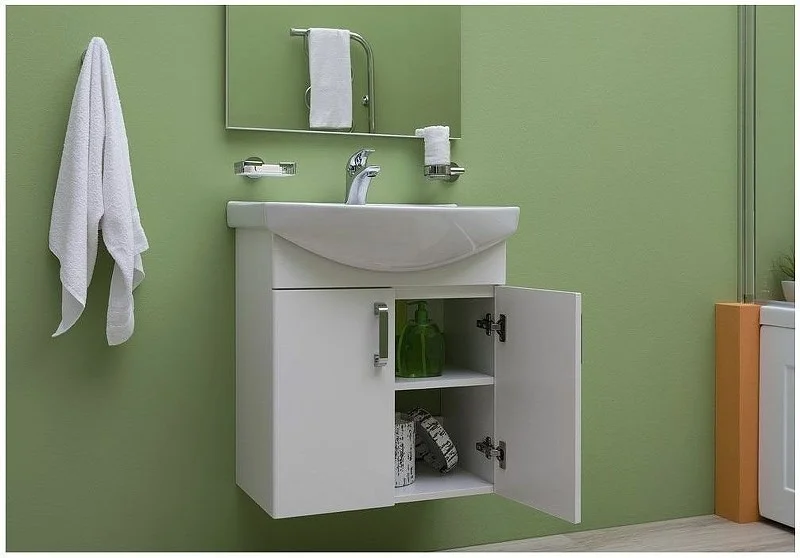 Тумба Aquanet Ирис 60, цвет - белый, (2 дверцы) отвечает всем основным покупательским предпочтениям. Во-первых, выполнена она в белом цвете – самом востребованном для обустройства санитарно-бытовых помещений. Во-вторых, радует экономных покупателей очень привлекательной ценой. В-третьих, изготовлена из влагостойких материалов: корпус тумбы – из ЛДСП, а фасады – из МДФ. Тумба шириной 60 см имеет универсальный тип установки. Ее можно подвесить или установить на ножки – оба варианта предусмотрены. Внутреннее устройство тумбы стандартно: две распашные дверцы, где все необходимое можно разложить по двум полочкам. Дверцы оборудованы доводчиками, поэтому их закрывание происходит плавно и без стука. В комплекте с тумбой идет керамическая раковина «Элеганс» с обрамлением. <