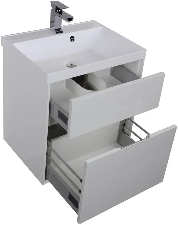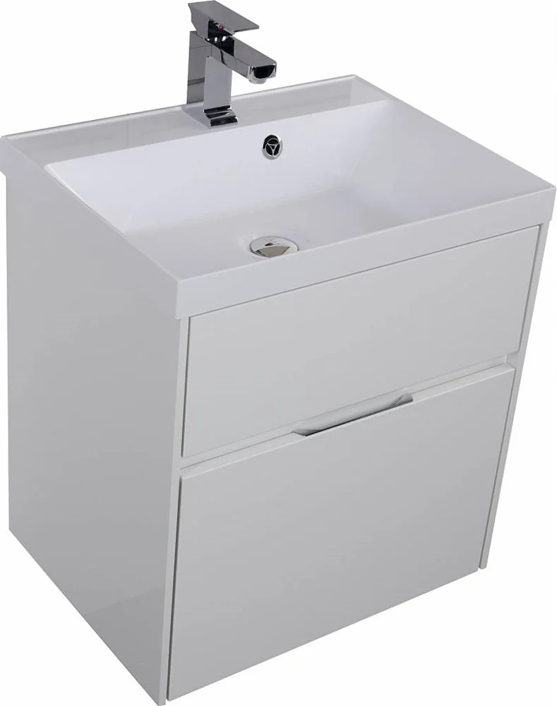 Тумба с раковиной Акванет Латина — новое предложение для тех, кто решил создать ванную комнату в стиле «модерн». Современные лаконичные формы такой мебели позволяют оснащать даже небольшие по площади ванные комнаты весьма рационально. Тумба сравнительно компактна, в то же время ее вместительное отделение сокроет в себе белье и полотенца. Среди достоинств тумбы — хромированная ручка выдвижного ящика с доводчиками плавного закрывания и глубокая прямоугольная раковина из литьевого мрамора, что очень актуально для современных интерьеров. Белое глянцевое покрытие «Латины» соответствует представлениям о чистоте и здоровье и гармонирует с белизной ванны, кабины или душевого уголка в ванной комнате.