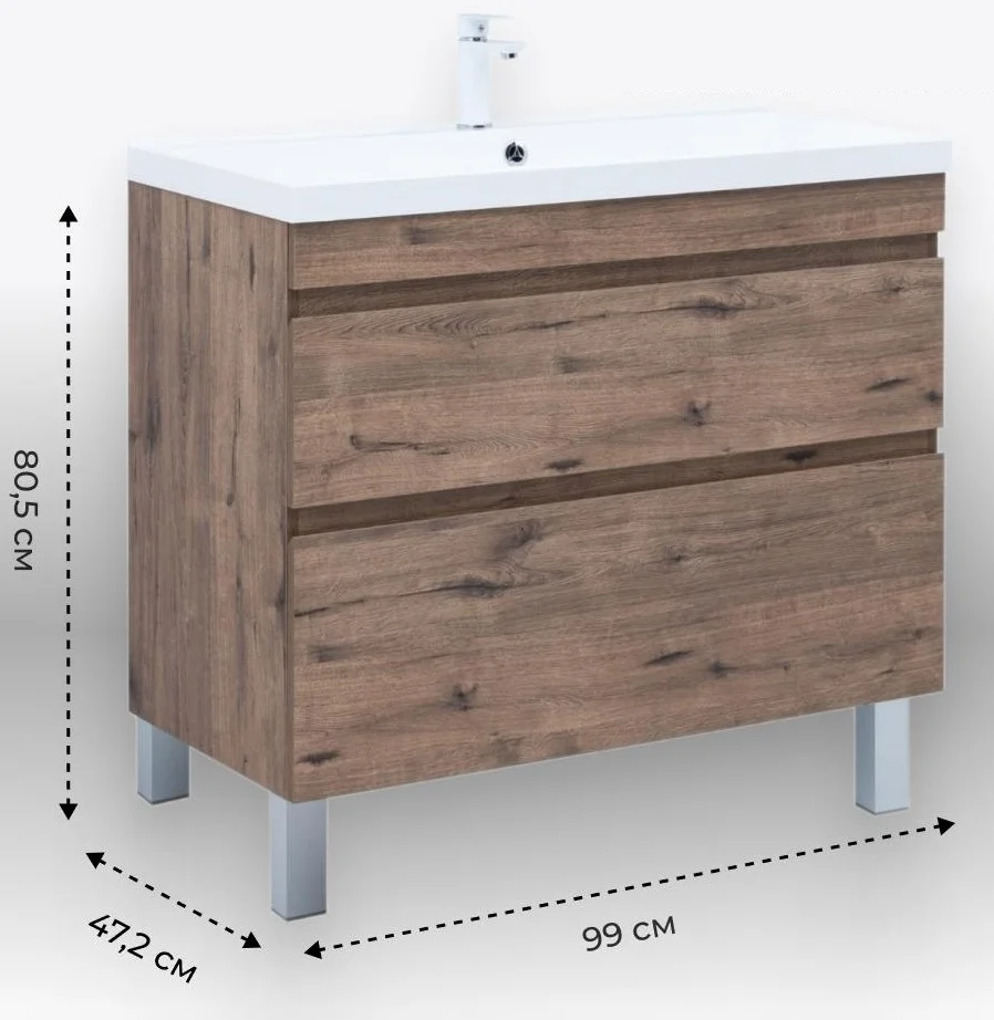 Тумба с раковиной Aquanet Нота New 100 00345806 напольная, дуб веллингтон табак