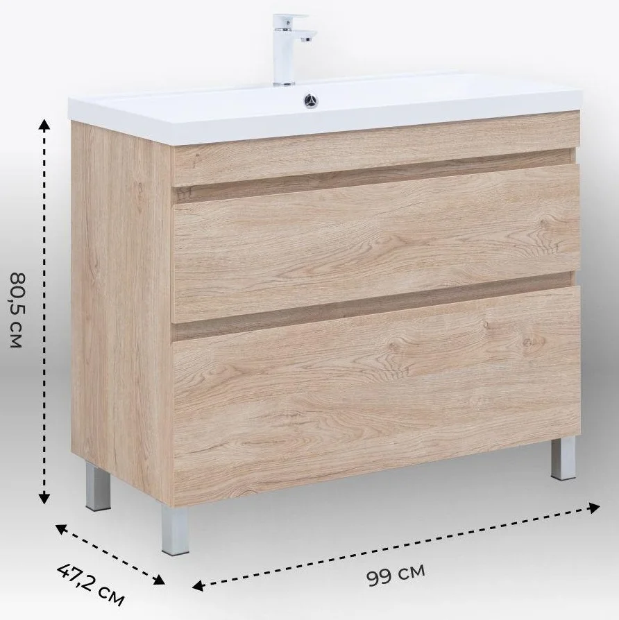 Тумба с раковиной Aquanet Нота New 100 00345807 дуб светлый