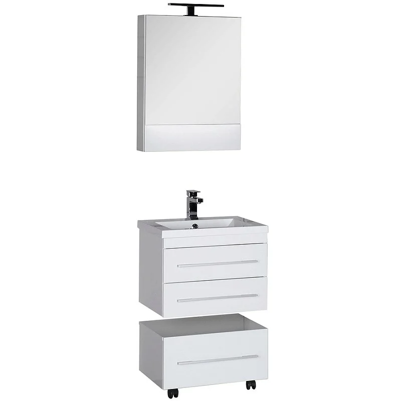 Навесная тумба Нота облегчает уборку благодаря отсутствию ножек и обеспечивает место для хранения бытовых средств в двух глубоких ящиках. Тумба представлена как часть набора мебели для ванной комнаты Акванет Нота 58, но может быть приобретена и отдельно. Дополните набор подкатной тумбой с выдвижным ящиком, которая одновременно может служить и зоной для хранения, и удобной подставкой.
