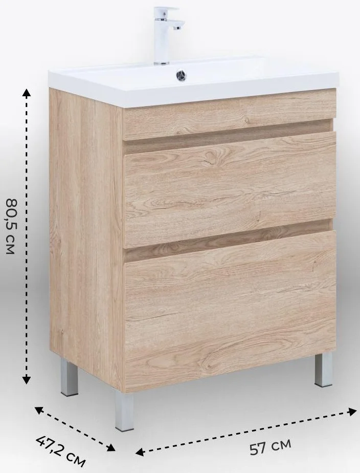 Тумба с раковиной Aquanet Нота New 60 00345798 дуб светлый